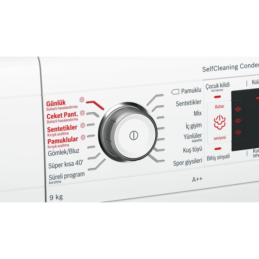 | Kurutma ek programlari | Buharlı hav. Business, Buharlı hav. Günlük kıyafetler, Gömlekler/Bluzler, İç çamaşırları, karışık, Kuş tüyü, outdoor, Pamuklu, Sentetik, Süper 40, Ütülenmeyen pamuklular, Ütülenmeyen sentetikler, yünlüler sepette kurutma, Zaman programı sıcak |